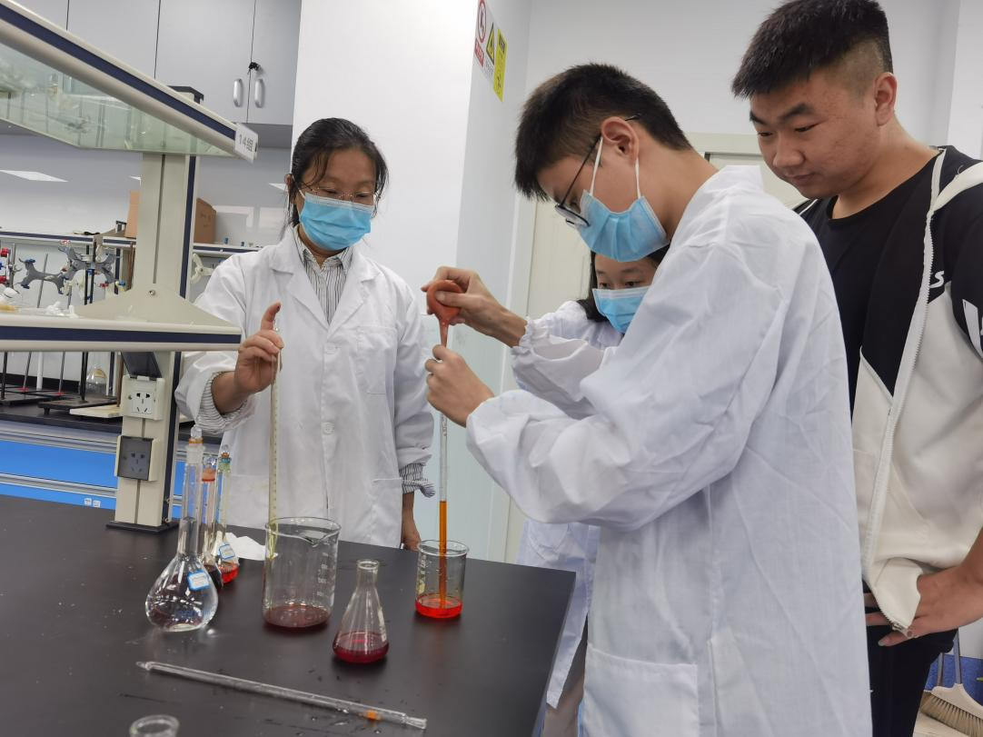 会后,老师们积极投身《皮革分析检验》实验教学各项工作之中,罗怡老师准备好了各种实验用试剂,陈慧老师指导学生们配制溶液和试剂;王忠辉老师带领助教薛鹏博调试实验用仪器设备,戴红老师、陈慧老师、助教薛鹏博带领学生们参加新购凯氏定氮仪的使用培训和进行视频录制。