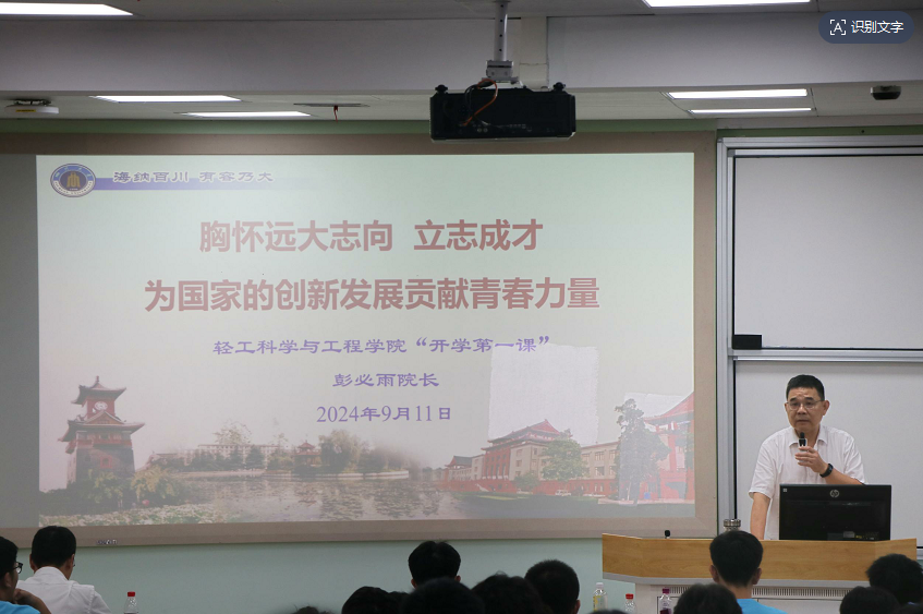 为深入贯彻党的二十大精神,全面贯彻党的教育方针,践行社会主义核心价值观,落实立德树人根本任务,做好2024级本科新生入学教育工作,2024年9月11日下午,彭必雨院长在江安校区第一教学楼B307教室以《胸怀远大志向、立志成才,为国家的创新发展贡献青春力量》为主题向2024级全体本科新生讲授开学第一课。