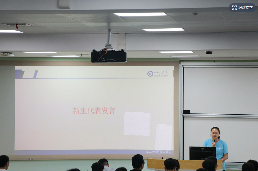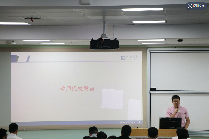 随后,教师代表王亚楠教授发言。王亚楠教授给大家分享了自己在川大的求学生活,同时提出了四点建议:一是保持好奇心和求知欲;二是学会自我管理和时间规划;三是积极参加校园活动与社会实践;四是保持积极乐观的心态。“愿你们怀抱梦想又脚踏实地。”这是王亚楠教授对同学们提出的期许。