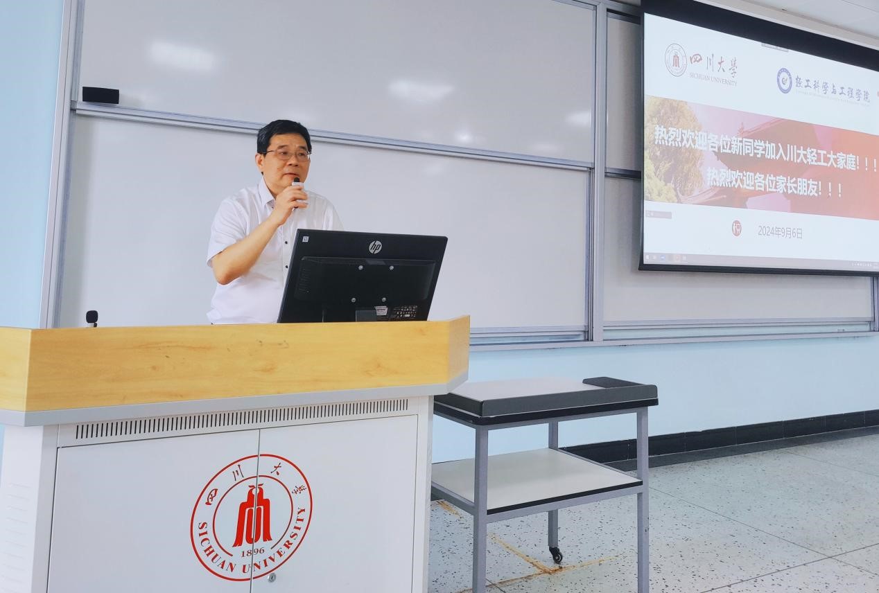 为加强家校联动,增强2024级新生及家长对大学生活和学院特色的了解,学院于2024年9月6日上午在江安一教B305召开2024级本科新生家长座谈会。参加本次会议的有学院党委李天富书记、院长彭必雨教授、副院长陈意教授、食品工程系主任吕远平教授、段飞霞副教授、但年华副教授,2024级新生辅导员余昕玲老师以及线上线下200余名新生家长。本次家长座谈会由学院党委冯国涛副书记主持。