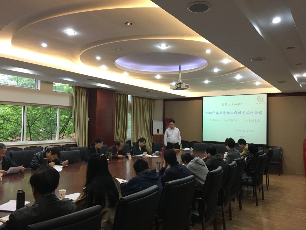 2018年3月30日上午九点,轻纺与食品学院在皮革楼209会议室召开2018年春季学期本科教学工作会议。学院刘晓虎书记、何有节院长、冯国涛副书记、彭必雨副院长和各系系主任、教学副系主任、教研室主任、督导组成员以及院办本科教学人员出席了此次会议。