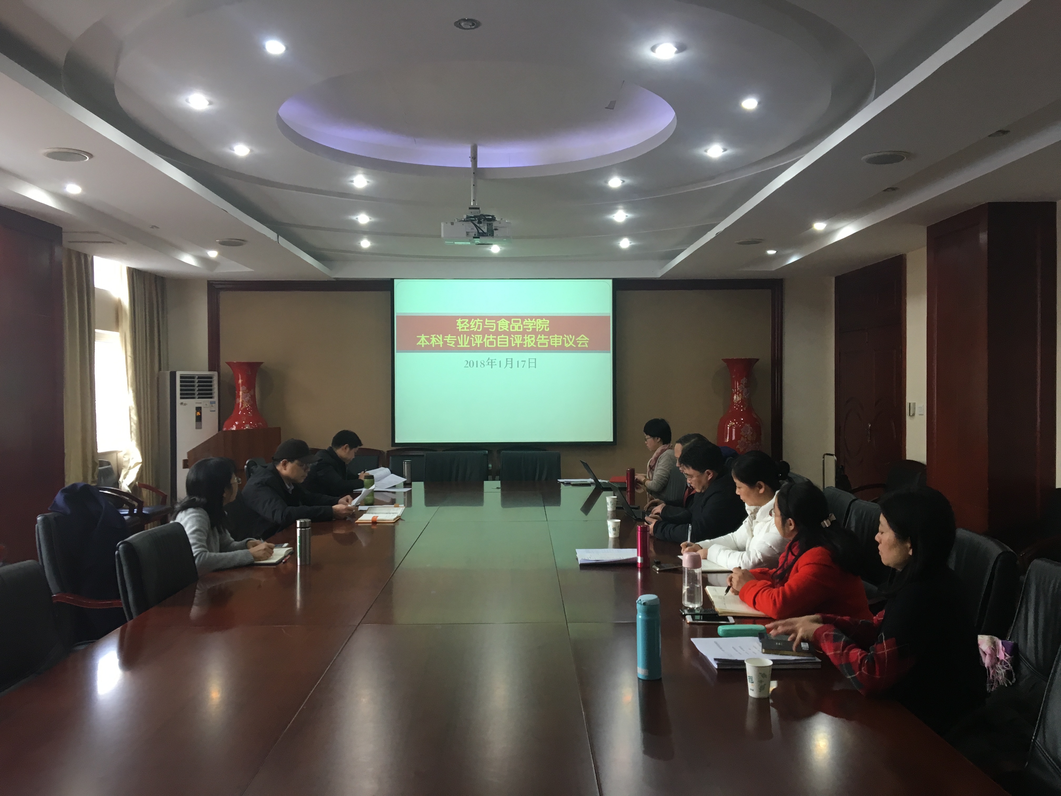 2018年1月17日下午两点半,学院在皮革楼209会议室召开本科专业评估自评报告审议会。刘晓虎书记、何有节院长、彭必雨副院长和各专业负责人参加了会议。