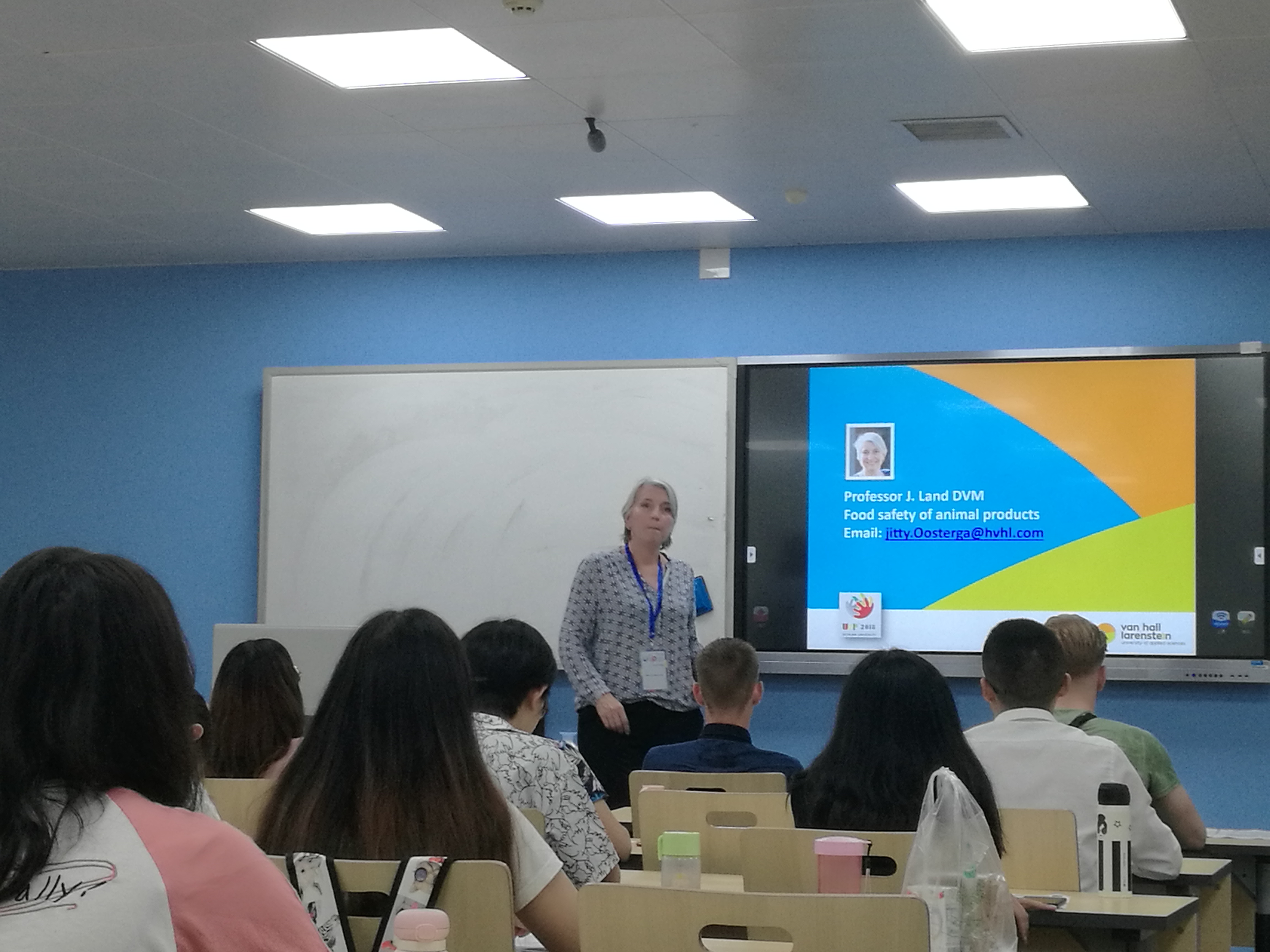 为培养具有国际视野的专业人才,羞羞漫画 食品工程系专业在羞羞漫画 国际课程周期间,特别邀请与羞羞漫画 食品工程系有本科生“2+2”联合培养合作学校——荷兰万豪劳伦斯坦应用科学大学的Jitske Andrea Land教授来羞羞漫画 授课,并在201879日至19日期间为食品科学与工程专业本科生开设了具有专业特色的全英文课程Prudent use of antibiotics in Dairy(抗生素在乳制品生产加工中的滥用现象)Jitske Andrea Land教授一直从事乳制品中抗生素防控方面的研究,曾在瓦赫宁根大学、皇家菲仕兰乳制品公司从事相关科研教学工作。
