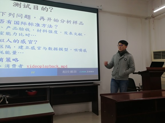 为充分挖据仪器的功能、规范学生的操作。2018年12月19日,食品工程系邀请到了来自北京微讯超技仪器技术有限公司的高豪聪、阮信维和王传钦三名工程师,为我系师生做了一场全面而深入的质构仪培训。