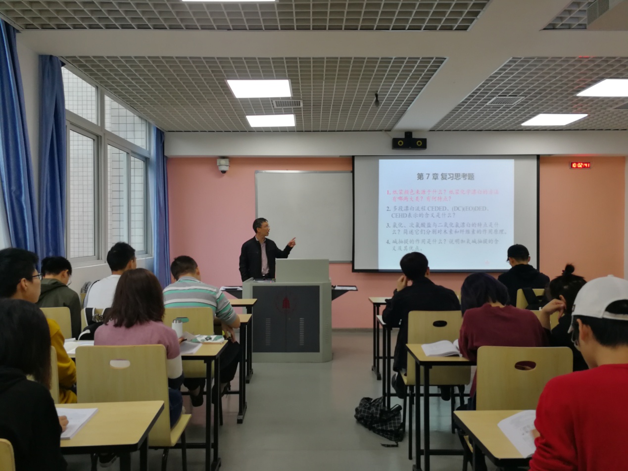 基层教学组织建设工作实施办法(试行)9.26》的文件精神和要求,2019年10月24日上午,生物质与皮革工程系中青年教师在三教213教室观摩学习了李正军教授主讲的《制浆造纸原理与工艺》课程,该教研活动取得圆满成功。