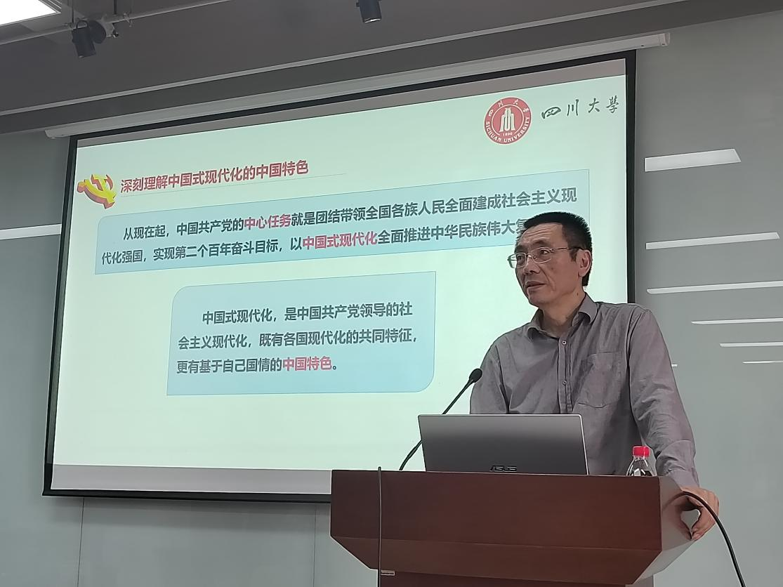 蒋教授以生动事例向与会人员阐释了中国式现代化特色,中国式现代化开创了不同于西方资本主义现代化的全新路径,打破了“现代化等于西方化”的迷思,为人类对更好社会制度的探索提供了中国方案、贡献了中国智慧。