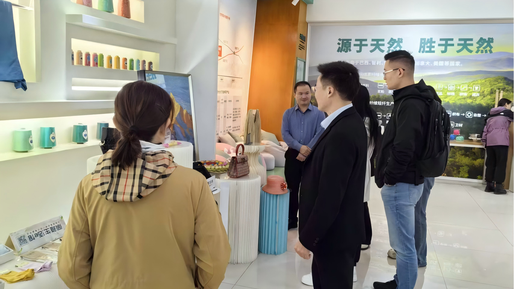 首先,丝丽雅集团科技与项目管理部部长邓毅带领全体老师参观了公司展厅。邓毅向老师们介绍了公司通过坚定不移实施创新驱动战略,逐步从最开始的宜宾化纤厂成长为全球生物基纤维材料领域领军者的以“生物基纤维材料”产业为根基,以“循环经济”产业和“新兴生物”产业为战略一元,以地产和贸易为辅助一元的“一基二元”产业集群的奋斗历程。公司从仅生产传统粘胶纤维到实现莱赛尔绿色纤维的产业化过程,充分体现了丝丽雅“变革有为、开放创新、大智图强”的羞羞漫画。