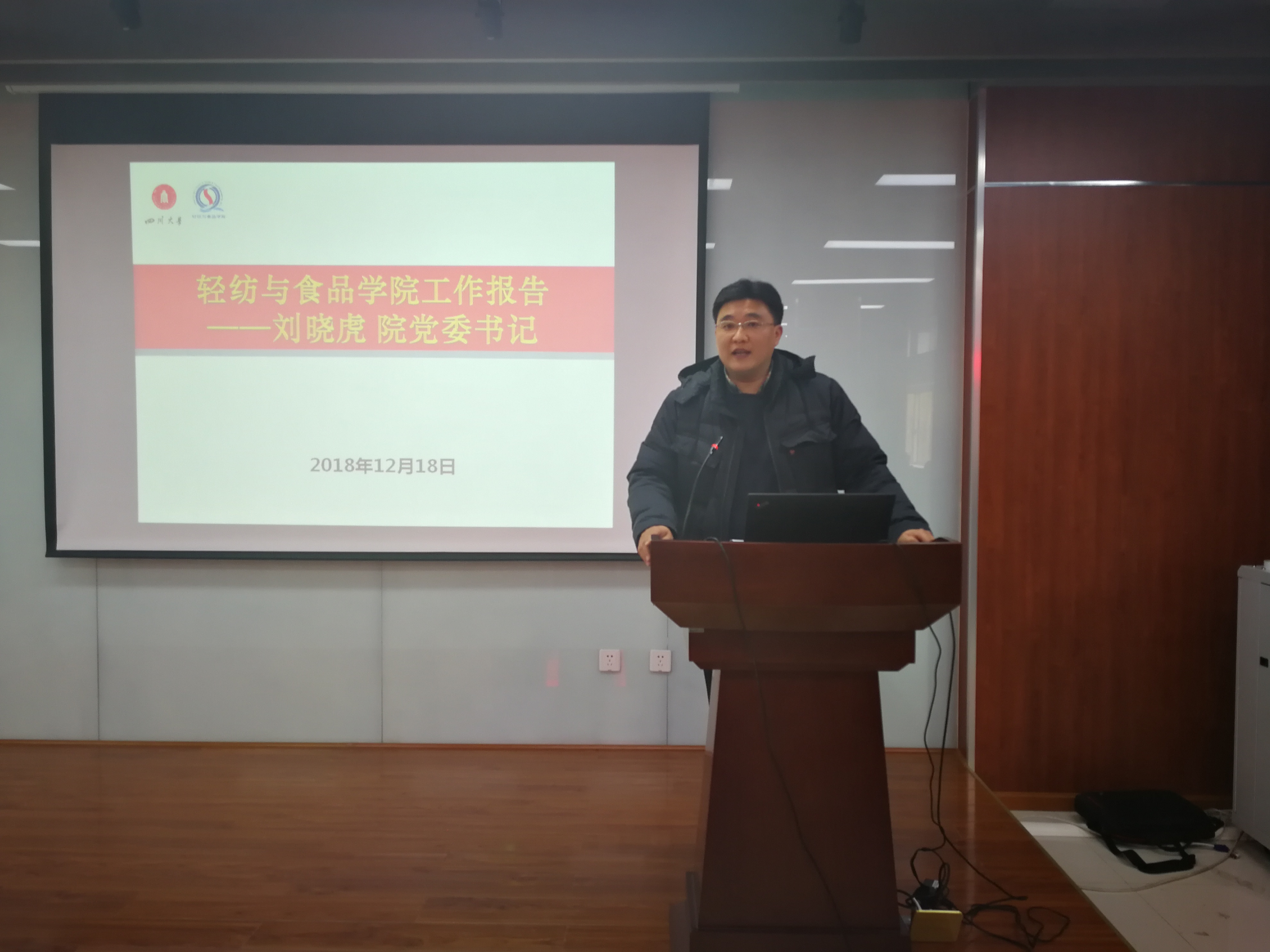 1218日下午,学院在皮革楼报告厅召开本年度中层领导干部述职大会。刘晓虎书记、何有节院长分别就分管工作向全院教职员工做汇报,其余四位中层领导干部也分别就自己的分管工作向全院教职员工做年度述职。副处级专职组织员田彬就本年度工作做了汇报。随后,进行了中层领导班子、领导人员和专职组织员的民主测评,测评原始材料已在当天封装并上报学校党委组织部。