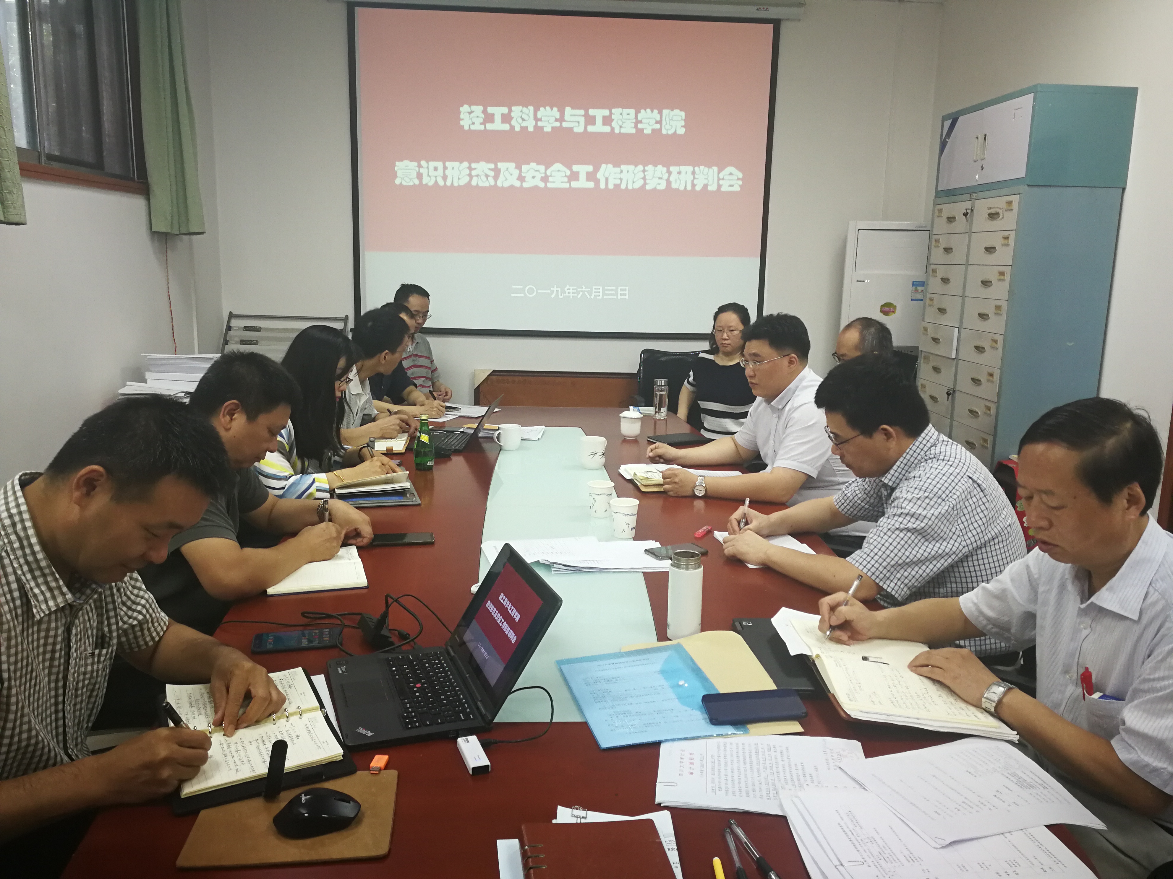 2019年6月3日上午,学院党委在纺工附楼201会议室,召开意识形态及安全工作专题会议。全体中层领导干部、党委委员、教职工党支部书记参加了本次会议,会议由刘晓虎书记主持。