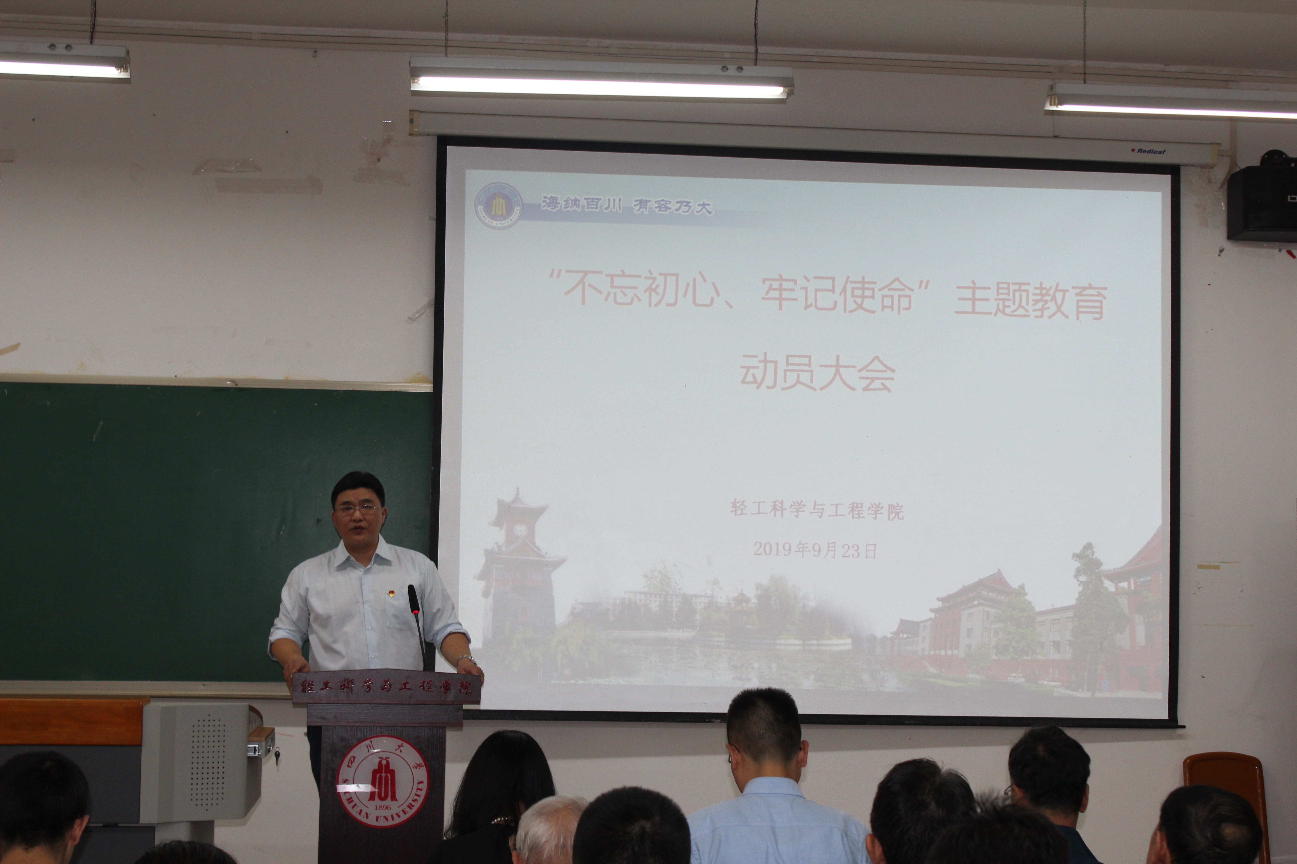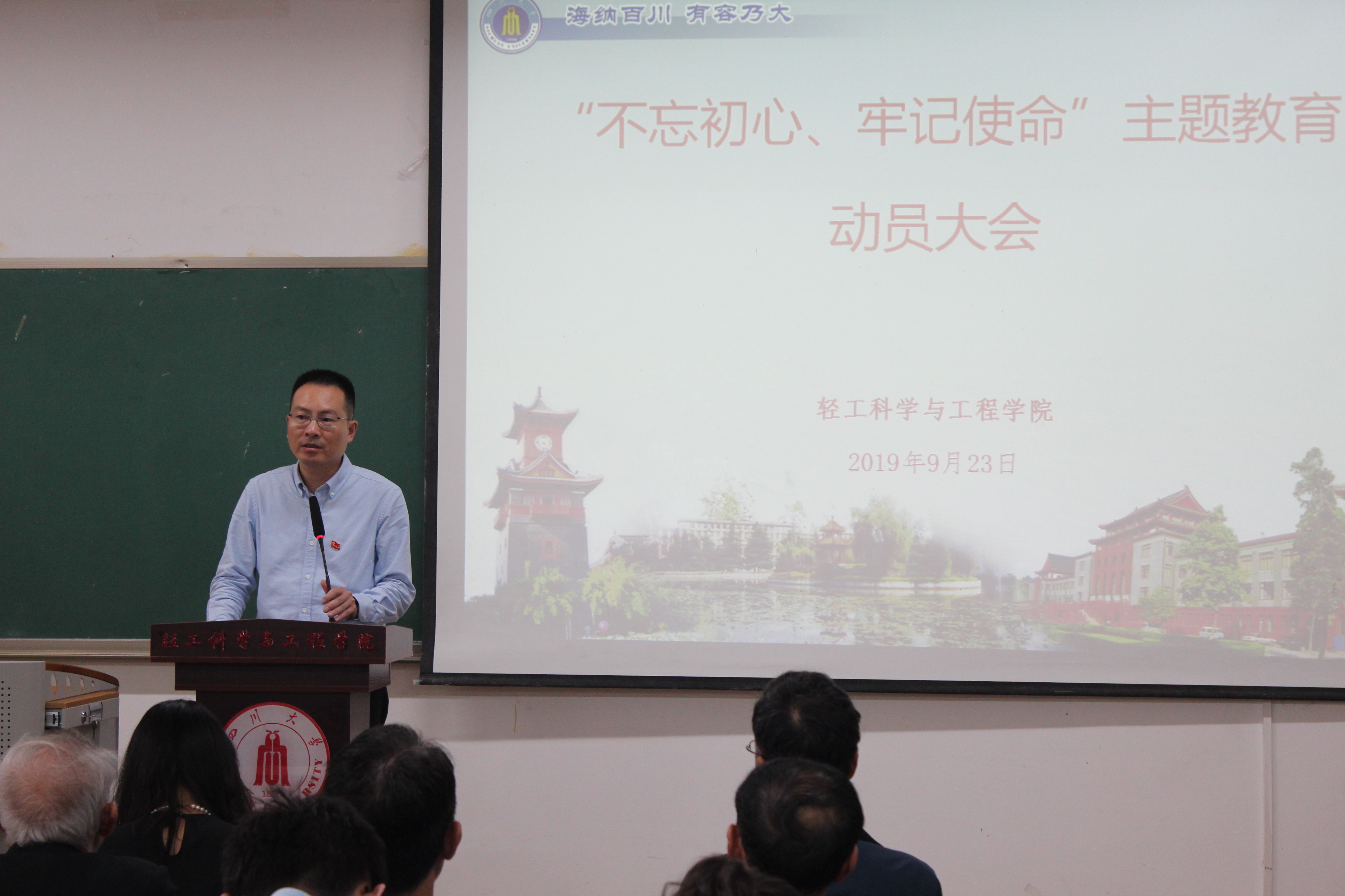 大会在庄严的国歌声中拉开序幕。学院党委书记刘晓虎同志作“不忘初心、牢记使命”主题教育动员报告。刘书记以《不忘初心、牢记使命,以推进“两个伟大”为引领 加快一流学院的建设步伐》为题,重点从三个方面做了动员讲话和安排部署。即深刻领会开展主题教育的重大意义,确保全员认识到位;紧密结合学院实际开展好主题教育,确保全面取得实效;切实加强主题教育的组织领导,确保全程有力有序。强调全院党员干部、党支部一定要按照中央要求和学校部署,进一步统一思想、明确要求、压实责任,认真做好主题教育的各项工作,确保主题教育取得扎扎实实的实效。
