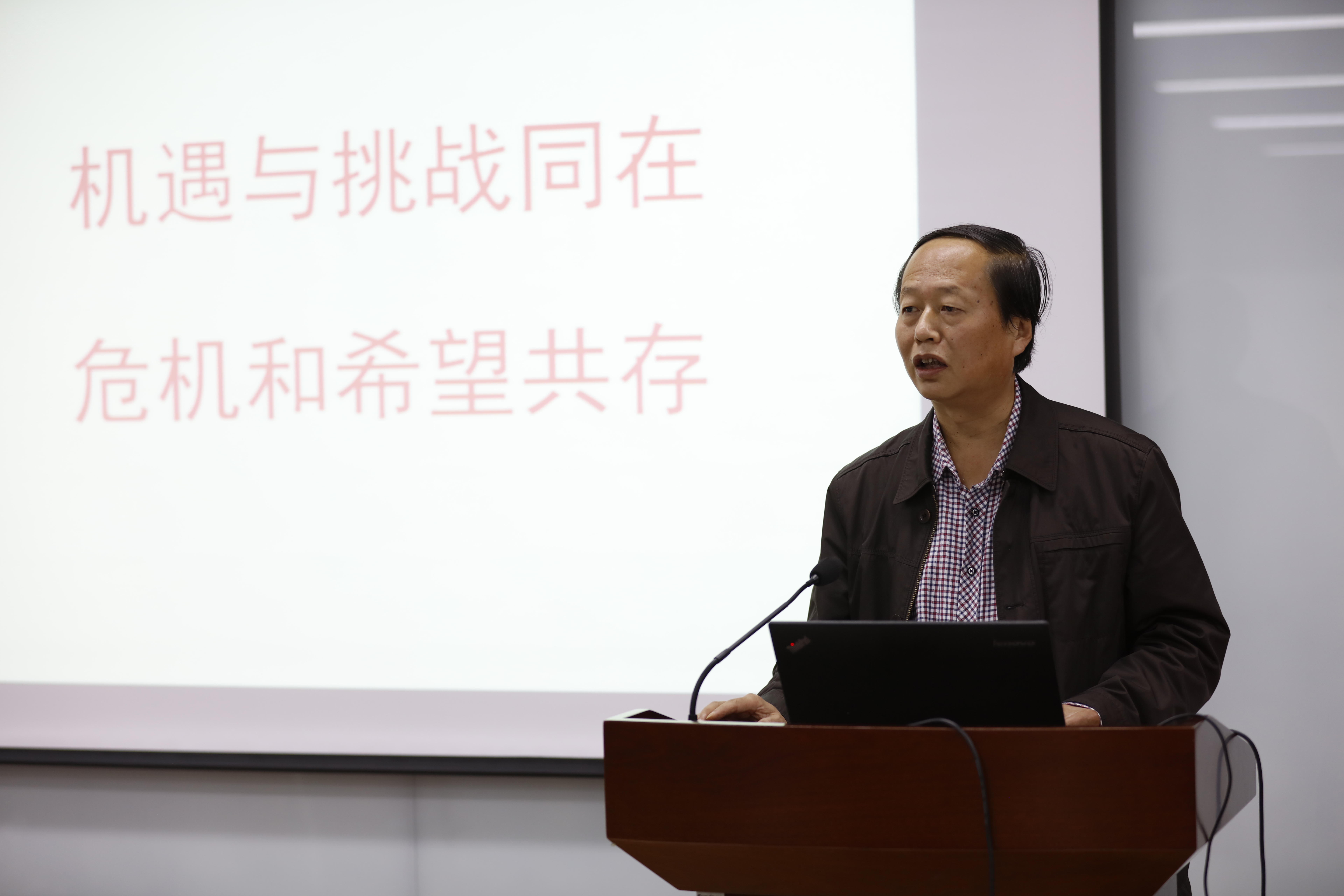 刘晓虎书记以《不忘初心  牢记使命——以时代精神为引领  加快一流学院建设步伐》为题,围绕“对主题教育的认识、“我们的初心与使命、“调研检视到的问题、“整改方向与举措等四个方面,分别从对主题教育的认识理解及学习感受、共产党人的初心和使命、当前调研检视到的4个大类(党的建设、能力与作风、核心竞争力打造、师生获得感幸福感安全感)共20条问题、整改的20项举措等为大家进行授课讲解。