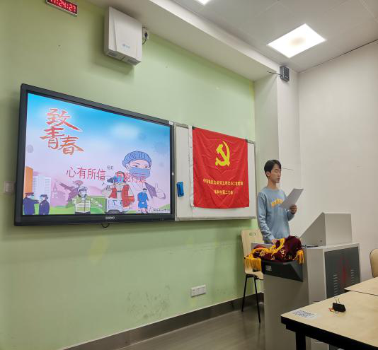 本科生第二党支部围绕新冠肺炎疫情中党员群体先进事迹,在基教A302进行一场“劳动育人、筑梦青春、未来可期”主题党日活动。出席活动有支部全体党员和学院党政办李艳老师,活动由支部书记杨维同志主持。