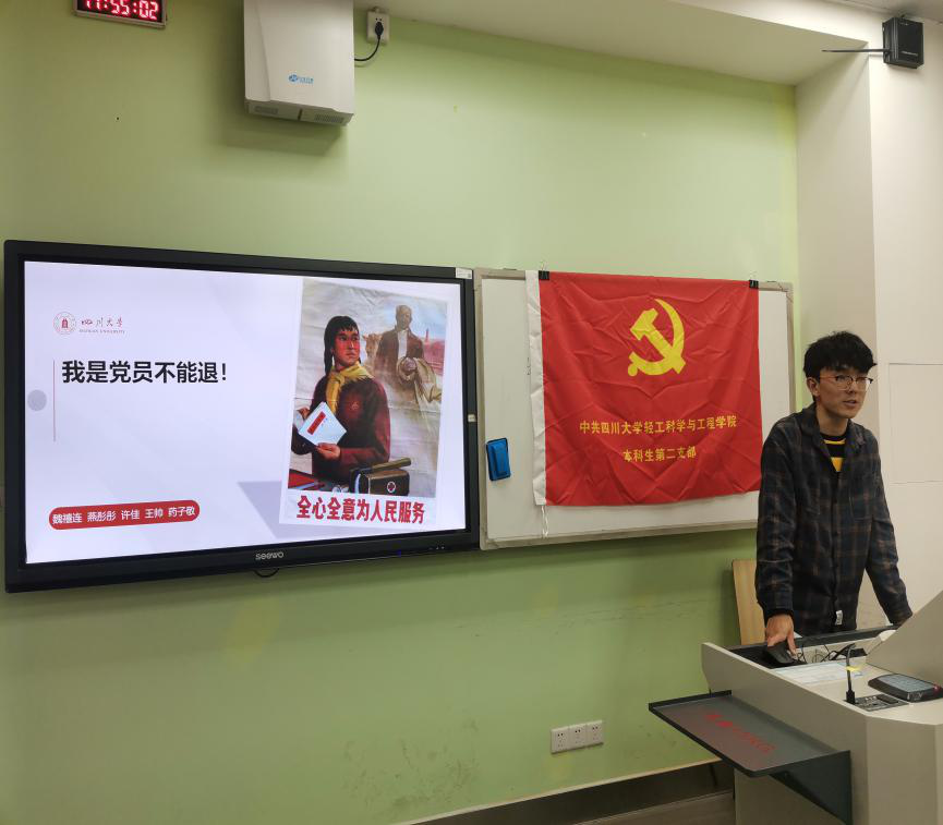 第三小组成员代表魏禧连以“我是党员不能退”为主题进行分享。通过优秀党员同志在疫情、灾情面前身先士卒,毫不犹豫地牺牲自己的利益,保全群众的利益,毫不迟疑地把危险留给自己,把安全让给群众,他们是乘风破浪的逆行者。魏禧连同志代表第三小组表示,我是党员不能退,不只是一句空喊的口号,而是需要付诸行动来证明的,青年一代应该深刻铭记这一宗旨,努力践行作为党员的使命与担当的大局观,成为一个能起到榜样作用的优秀党员。