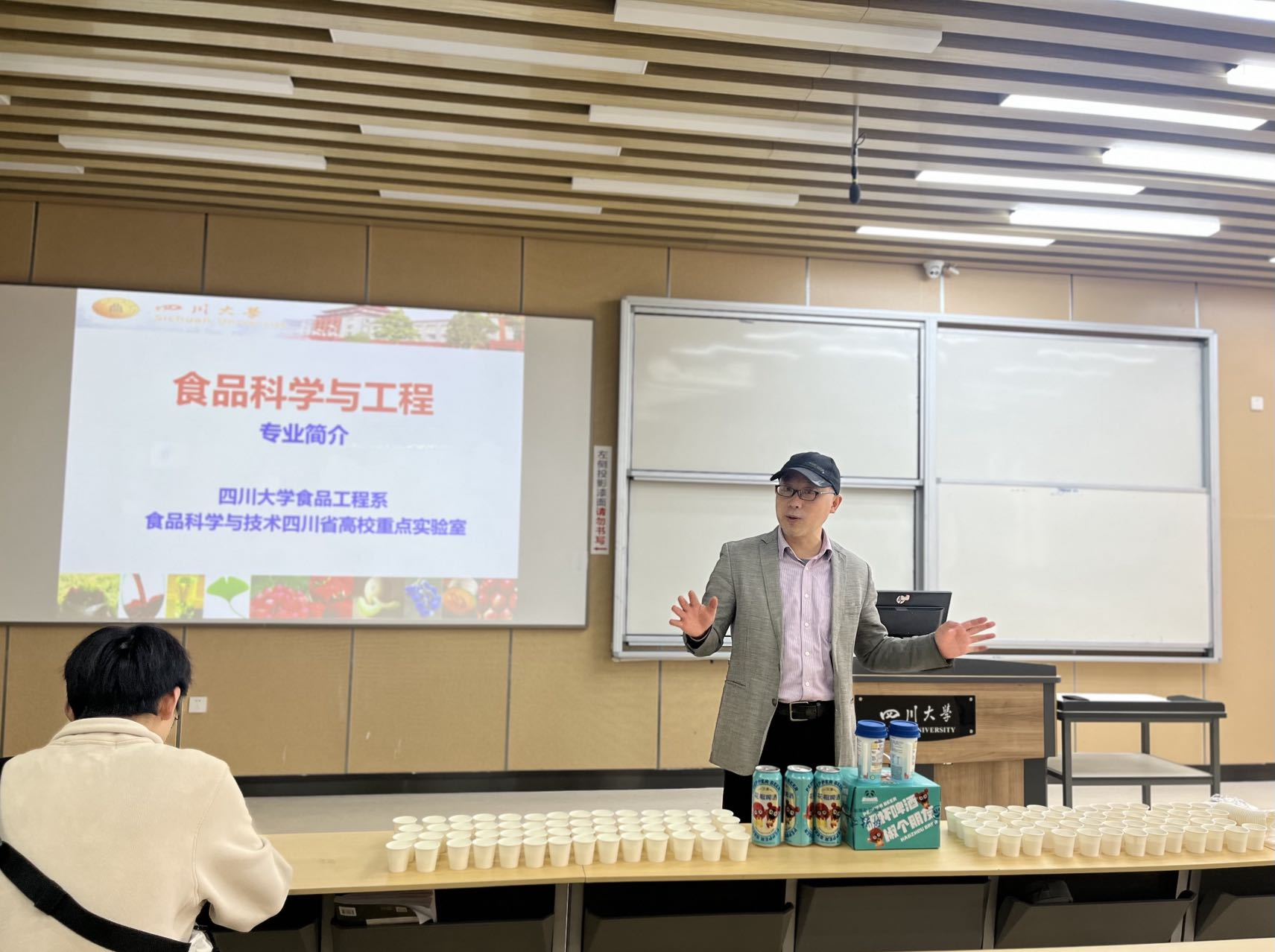 何强老师首先介绍了食品科学与工程专业发展的历史沿革、现状和行业前景,其后向同学们展示了本专业教师产学研开发的新产品,最后同学们针对关心的问题积极发言提问,老师们进行了解答。通过本次教研活动,帮助同学们完整认识专业发展方向,结合兴趣提升学习热情,教师们深入了解学生的学习需求,帮助学生解决学业生涯发展中的困惑与迷茫,为未来结合学科竞赛、科研训练、大学生创新创业计划等,以以“研教结合、项目驱动”的模式提高本科教育教学质量,实践立德树人奠定了基础。