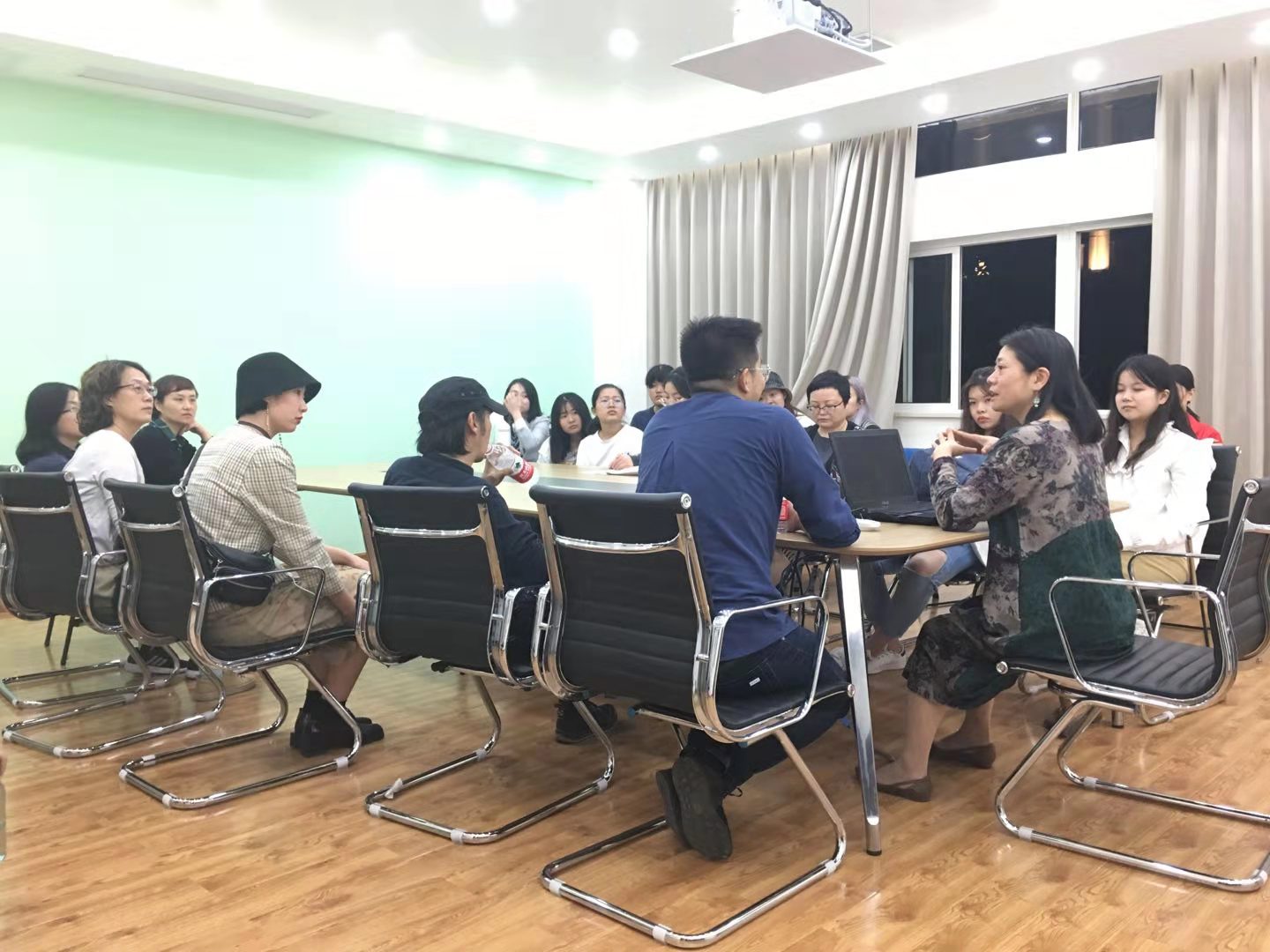 校督导组的傅师申老师也特意来到我们中间,表明了学校对基层教学交流活动的重视。参与教学研讨的师生包括教研室负责人赵武、冯洁老师,专业课教师周怡、吴晶、李晓蓉、吴芳、曾琦老师等,参与研讨的学生以今年5月到敦煌采风的大四学生为主,他们对敦煌有着美好的记忆,也有来自江安的大一的新生。研讨会特别邀请了被敦煌魅力感染,敦煌归来激发了创作热情以敦煌印象为主题设计制作了系列服装的武子涵同学,与我们交流她的创作。现场关于敦煌艺术及相关问题、在服装教学中如何引导学生创作,老师与同学之间,以及与来自敦煌研究院的邢耀龙交流热烈气氛良好有不错的效果。