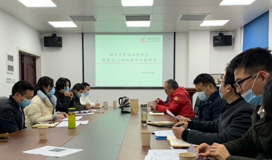 为深化“探究式-小班化”课程建设,进一步提高本科教学质量,提高课程目标达成度,同时迎接校院探究式-小班化教学竞赛的开展,12月18日下午食品科学与工程专业教研室召开了“探究式-小班化”教学研讨会,会议由教研室主任段飞霞主持,教研室全体教师参加,。