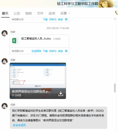 图2.学院将不能按时返校的学生信息发送给相关课程老师