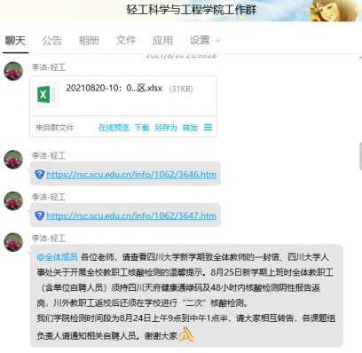 图1.学院提醒老师配合学校疫情防控做好核酸检测工作