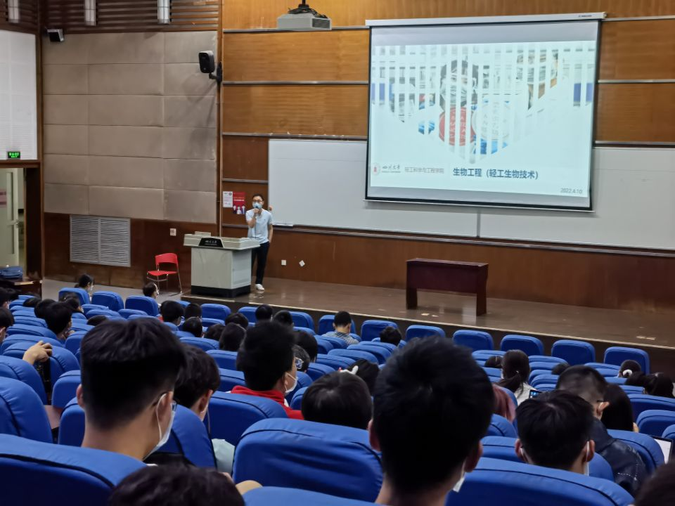 生物工程(轻工生物方向)专业建设,增强学生学习主体性意识及导师引导责任意识。 2022年4月10日上午,于江安校区综合楼C407报告厅,轻工生物技术教研室面向2021级新生进行生物工程专业宣讲活动。