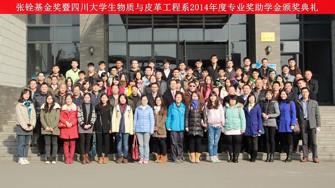 2014年12月12日,第七届张铨基金奖、华南杰出奖助学金、狮岭杯箱包设计比赛奖学金、斯特尔奖学金、联丰爱心基金、广州绿北洋奖学金、欣驰—博奥奖学金、吴建军助学金颁奖典礼在江安校区法学院报告厅隆重举行。参加本次颁奖典礼的嘉宾有张铨基金委员会名誉主任张扬教授、张铨基金委员会主任陈武勇教授、张铨基金监督委员会主任何有节教授、张铨基金评奖委员会秘书刘文涛老师以及第七届张铨基金获奖人员。设奖单位代表有广州花都狮岭镇人民政府副镇长胡才波先生、斯塔尔精细涂料(苏州)有限公司南区销售经理徐建平先生、斯塔尔公司实验室经理李艳女士、联丰化工有限公司总经理陈治军先生、台湾约泰实业公司总经理游正仁先生、才聚文化集团总裁熊金红先生、辽宁兄弟皮毛硝染厂总经理金铁铨先生、联丰化工辛集部经理华道收先生、广东省花都区狮岭镇相关部门领导、狮岭皮革皮具产业研究中心领导等出席了颁奖典礼。同时,出席本次颁奖典礼的学院领导有轻纺与食品学院党委赵毅书记,院长、生物质与皮革工程系系主任何有节教授,院党委副书记刘晓虎副教授,生物质与皮革工程系党支部书记程海明副教授,革制品教研室徐波主任等。生物质与皮革工程系2014年度全体获奖本科生、研究生学生,2014级本科生以及其他年级学生代表参加了颁奖大会。颁奖典礼由程海明副教授主持。