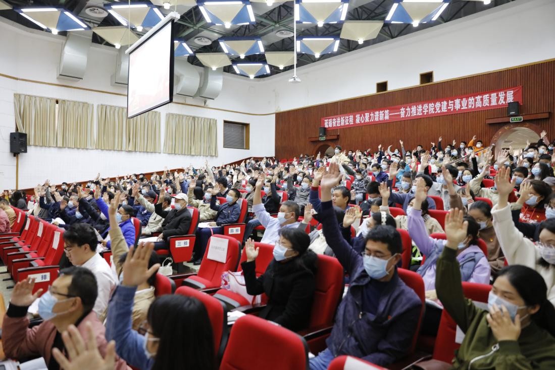 纪律检查委员会所作的题为《全面从严治党、忠诚履职尽责,深入推进党风廉政建设和反腐败工作取得新成效》的工作报告。报告总结了学院纪委五年来围绕中心工作,立足院情加强对重点领域和关键环节的制度建设,构建起廉政风险防控体系与一体推进“三不腐”的体制机制建设。通过服务发展大局、狠抓作风纪律、忠诚履职尽责,深入推进党风廉政建设和反腐败工作取得新成效,为推动学院高质量发展提供坚强有力的政治保障和纪律保障。报告客观分析了党风廉政建设和反腐败工作取得的成效与不足,对今后工作开展提出四点建议,要求全体党员同志在新征程新起点上,忠诚履职、自觉担当,全面推进反腐倡廉建设,为实现学院党委提出的发展目标和各项任务而努力奋斗!