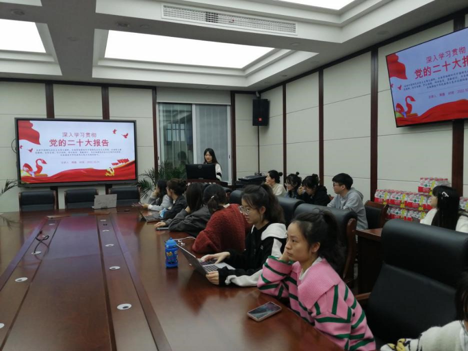 1031晚上7点半,食品研究生第一党支部开展了“深入学习贯彻党的二十大报告”的主题党日活动暨微党课活动,支部书记周茜同志就本月召开的中国共产党第二十次全国代表大会的报告内容进行领学,内容充实,主题明确,参会党员同志认真倾听,收获颇丰。