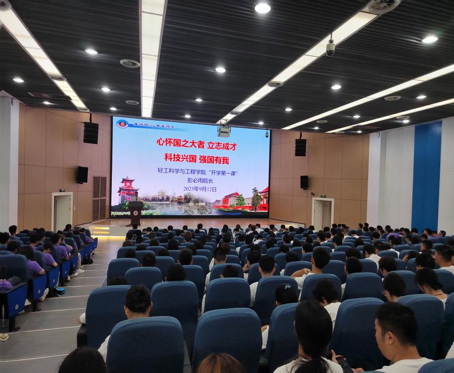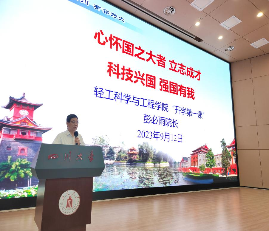 为深入贯彻党的二十大精神,全面贯彻党的教育方针,大力培育和践行社会主义核心价值观,推进习近平新时代中国特色社会主义思想进教材进课堂进头脑,落实立德树人根本任务,做好2023级新生入学教育工作,2023年9月12日上午,彭必雨院长在江安校区水上报告厅以《心怀国之大者 立志成才 科技兴国 强国有我》为主题向2023级本科生讲授开学第一课。学院党委冯国涛副书记主持。