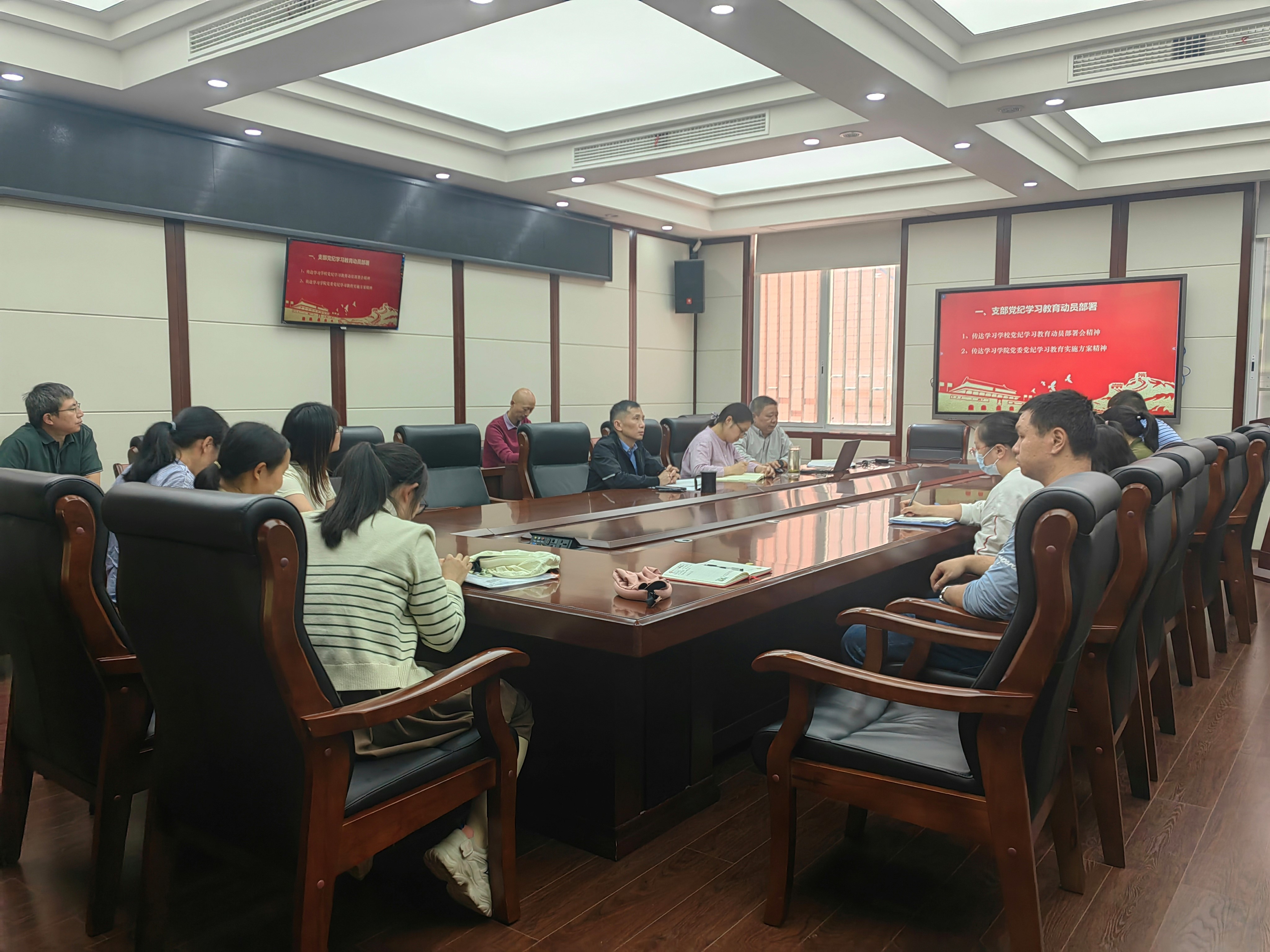 在党纪学习教育动员部署环节,支部书记田彬首先传达了学校党纪学习教育动员部署会精神,结合学院党委党纪学习教育的实施方案进行了详细的学习解读,并就下一步支部党纪学习教育工作的开展进行了安排。支部书记强调,开展党纪学习教育是加强党的纪律建设、推动全面从严治党向纵深发展的重要举措,支部将坚持以习近平新时代中国特色社会主义思想为指导,把党纪学习教育与学院开展“三个一流”创建活动、推进重点工作结合起来,精心组织,确保实效,力争把党纪学习教育成效转化为加快推进学校中国特色世界一流大学建设的强大动力。