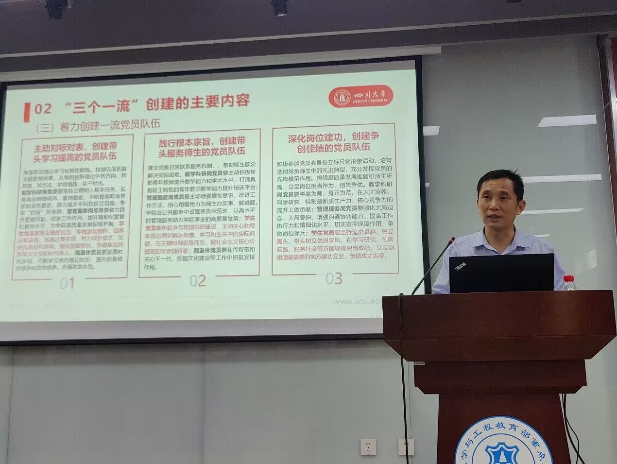 首先,李天富书记以党的二十大、二十届中央政治局第五次集体学习等重要内容与习近平总书记重要讲话精神入手,带领全体党员同志学习了新时代关于教育强国的重要论述,阐述了“三个一流”创建的时代背景。