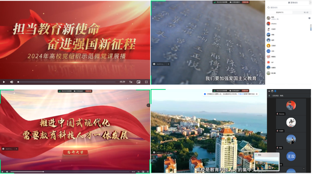 9月4日下午16:00,支部党员通过腾讯会议集中共同观看了2024年高校党组织示范微党课(第二阶段)第一期《坚持教育科技人才“三位一体”,奋力谱写中国式现代化宏伟篇章》。本次微党课由北京大学、中国科学技术大学、南开大学、厦门大学、山东大学、武汉大学六所高校的党员干部师生共同讲授,内容深入浅出,生动诠释了教育、科技、人才在全面建设社会主义现代化国家中的基础性、战略性支撑作用。通过集中收看,支部党员共同领悟“教育、科技、人才是中国式现代化的基础性、战略性支撑”的深刻内涵,深入推进教育、科技、人才“三位一体”协同融合发展,不断激发奋进强国新征程的强大力量,以实际行动迎接新中国成立75周年。老师们纷纷表示,要不断提升自身教育教学水平,积极投身科技创新,努力为国家培养更多高素质人才。