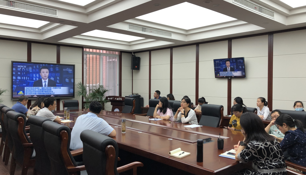 2021年9月24日,公共服务教工党支部在纺工附楼205会议室开展支部大会暨师德专题教育学习。在政治理论学习环节,公共服务教工党支部全体成员视频学习了习近平在中央党校(国家行政学院)中青年干部培训班开班式上的重要讲话精神。