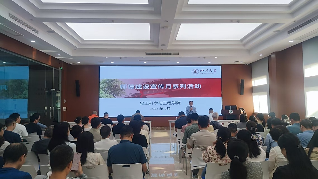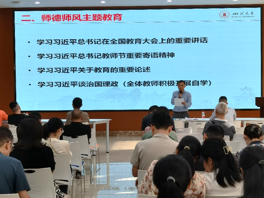 在望江校区皮革楼工业互联网中心开展“以教育家精神铸魂强师,谱写教育强国建设华章”主题的师德建设宣传月活动。学院领导班子及全体教职工参加,活动由学院党委书记李天富主持。
