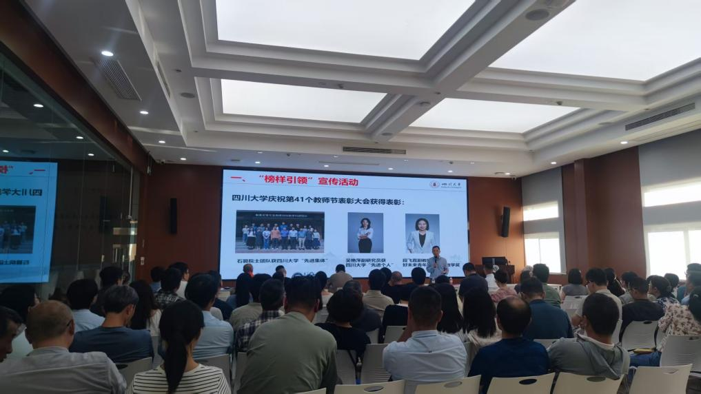 庆祝第41个教师节表彰大会上获得荣誉表彰的团队和个人。石碧院士团队荣获2024-2025学年度“先进集体”、段飞霞副教授荣获2025年“好未来青年教师优秀教学奖”、吴艳萍副研究员荣获2025年“先进个人”。为发挥先进典型的示范引领作用,学院邀请段飞霞副教授和吴艳萍副研究员分享获奖心得。她们对学院的培养与支持表示感谢,并表示将继续砥砺前行,为教育事业贡献力量。