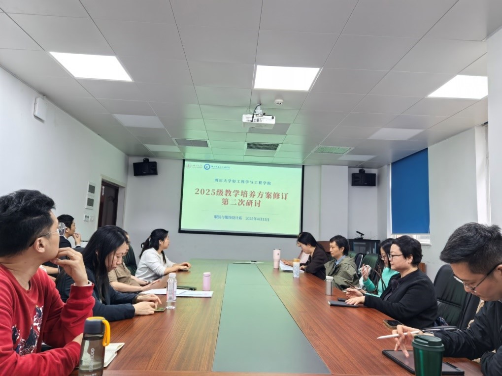 望江校区纺工楼A204会议室组织全体教师,围绕“新专业申报工作”、“2025级教学培养方案修订”两大主题展开了研讨。服装与服饰设计系全体教师参加了此次活动,系主任杨璐铭教授主持研讨会。