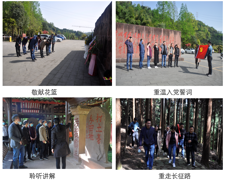 首先全体党员来到纪念馆前,向革命烈士敬献花篮,面对党旗庄严宣誓,通过重温入党誓词活动,全体党员回顾申请入党时的思想激情和奋斗追求;参观纪念馆过程中,党员同志们通过聆听历史讲解、观看历史照片、感受历史人物、阅读历史资料,直观生动地感受了红军长征时期的坎坷历程和革命先烈们舍身忘我、无私奉献的伟大精神。参观结束后,全体党员来到长征小道,重走长征路,体验了红军血战湘江、四渡赤水、飞跃泸定桥、爬雪山过草地等重大长征节点。