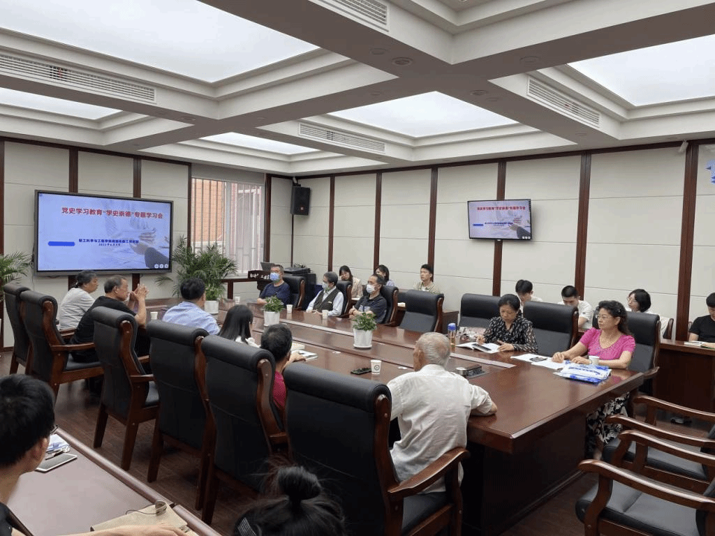 2021�6�3日上午,我院离退休教工党支部与纺织服装研究生第一党支部在纺工附楼205会议室,联合开展党史学习教育第三专题“学史崇德”组织生活会,本次会议邀请到学院党委书记刘晓虎同志参加,会议由离退休教工党支部书记李慧同志主持�