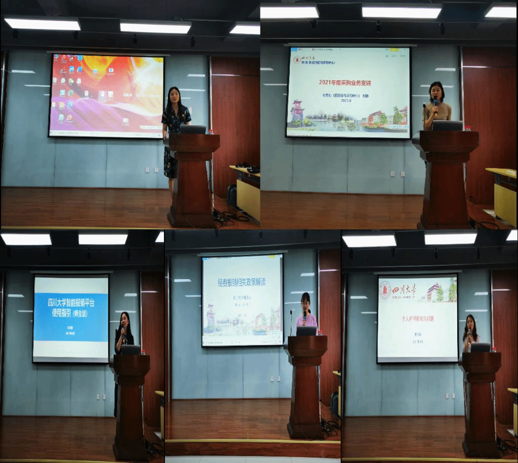 为进一步加深学院老师对财务工作的认识和了解,促进财务处(招投标与采购中心)工作人员与学院老师们的有效沟通,在财务处(招投标与采购中心)何艳主任的带领下,财务处刘静、王茜、余起漪、付稚如等老师分别就科研经费管理相关政策及业务办理、智能报销平台使用、招投标与采购相关政策及常见问题等方面进行了详细讲解,并逐一认真回答了在场老师们的疑问。