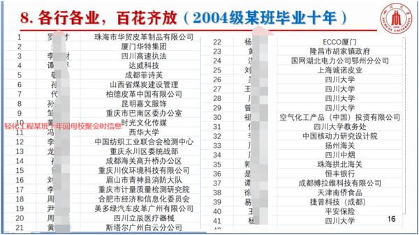 图6 轻化工程某班毕业十年返校信息